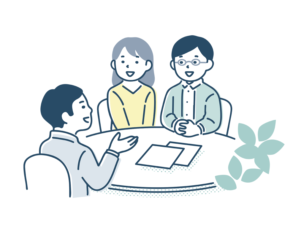 担当者が、お身体の状態、今後の生活や介護に関するご希望、ご予算、エリアなど伺い、施設候補をご提案いたします。ご心配なことなど何でもお話しください。オンラインまたは対面で行います。
